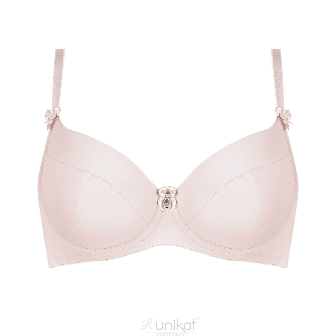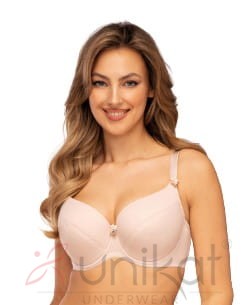 Elegancki model biustonosza z usztywnianymi miseczkami perfekcyjnie podtrzymującymi biust. Biustonosz wykonany jest z przyjemnego w dotyku materiału sprawiającego iż idealnie dopasowuje się do ciała. Usztywniona miseczka biustonosza efektownie uwydatnia biust podnosząc go mocno do góry oraz zapewnia stabilne podtrzymanie biustu i komfort noszenia. Gładkie miseczki biustonosza sprawiają iż jest on niezwykle funkcjonalny i idealnie nadaje do noszenia pod dopasowane ubrania.