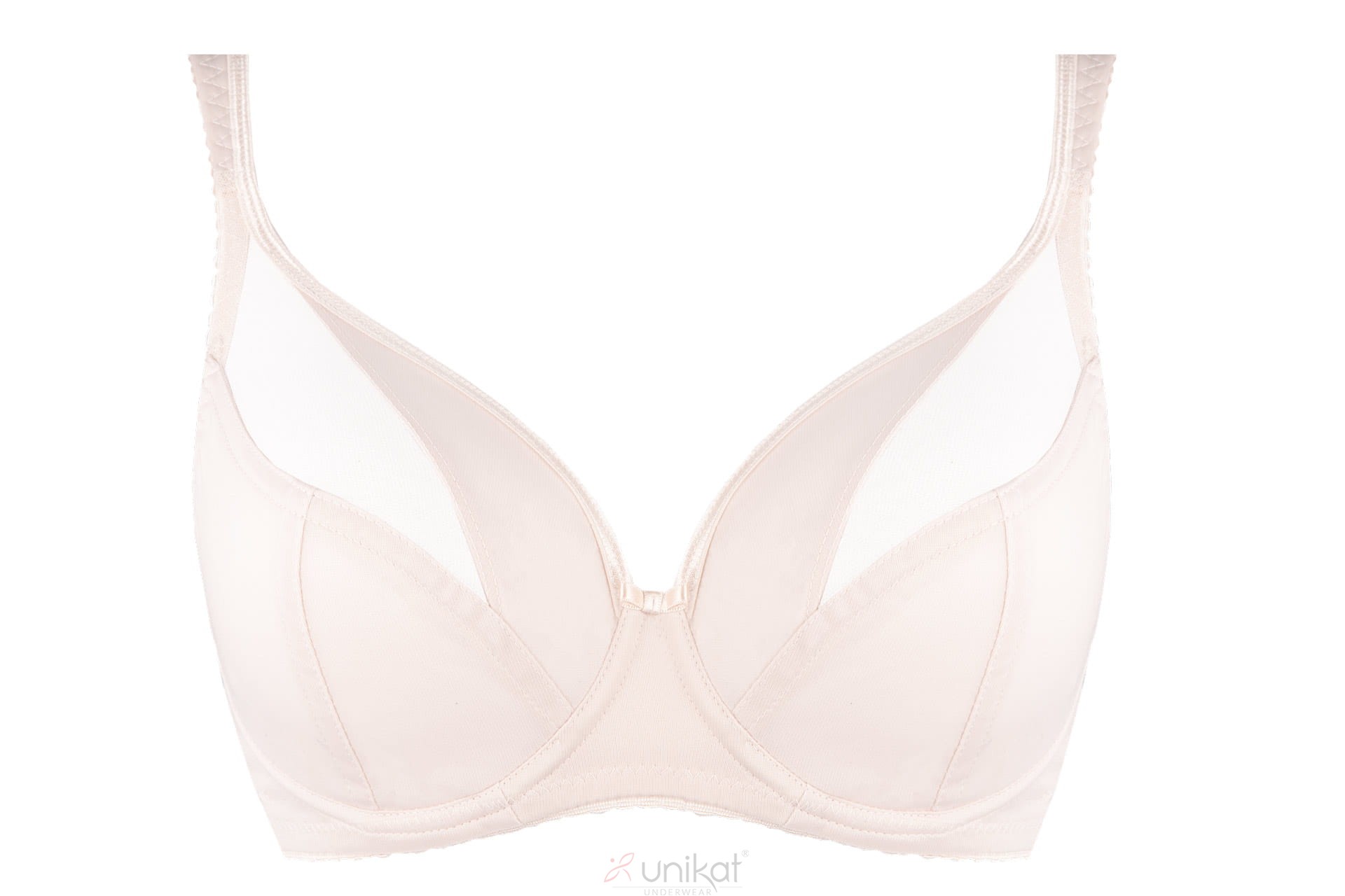 Wyjątkowego stylu dodaje prześwitująca tiulowa wstawka w górnej części miseczek, która subtelnie eksponuje i podkreśla piękno biustu.